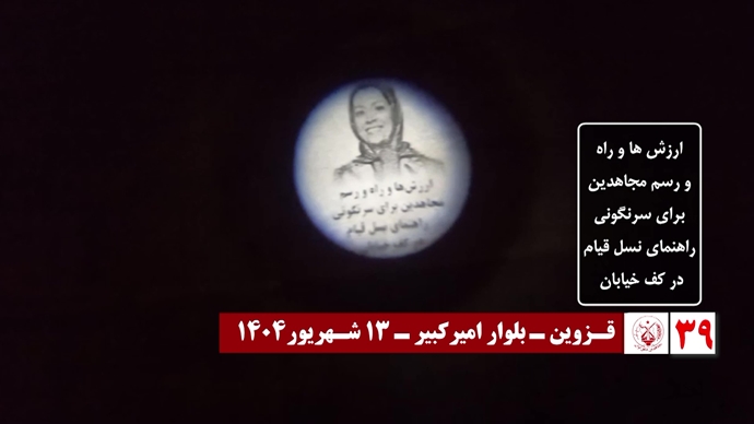 In Qazvin, Resistance Units marked the anniversary with widespread actions, including images of PMOI founder Hanif Rajavi and slogans such as “Freedom is the inalienable right of our nation” and “Women are the force of change.” Parks, streets, and squares became canvases for powerful reminders of the PMOI’s legacy of sacrifice and struggle.